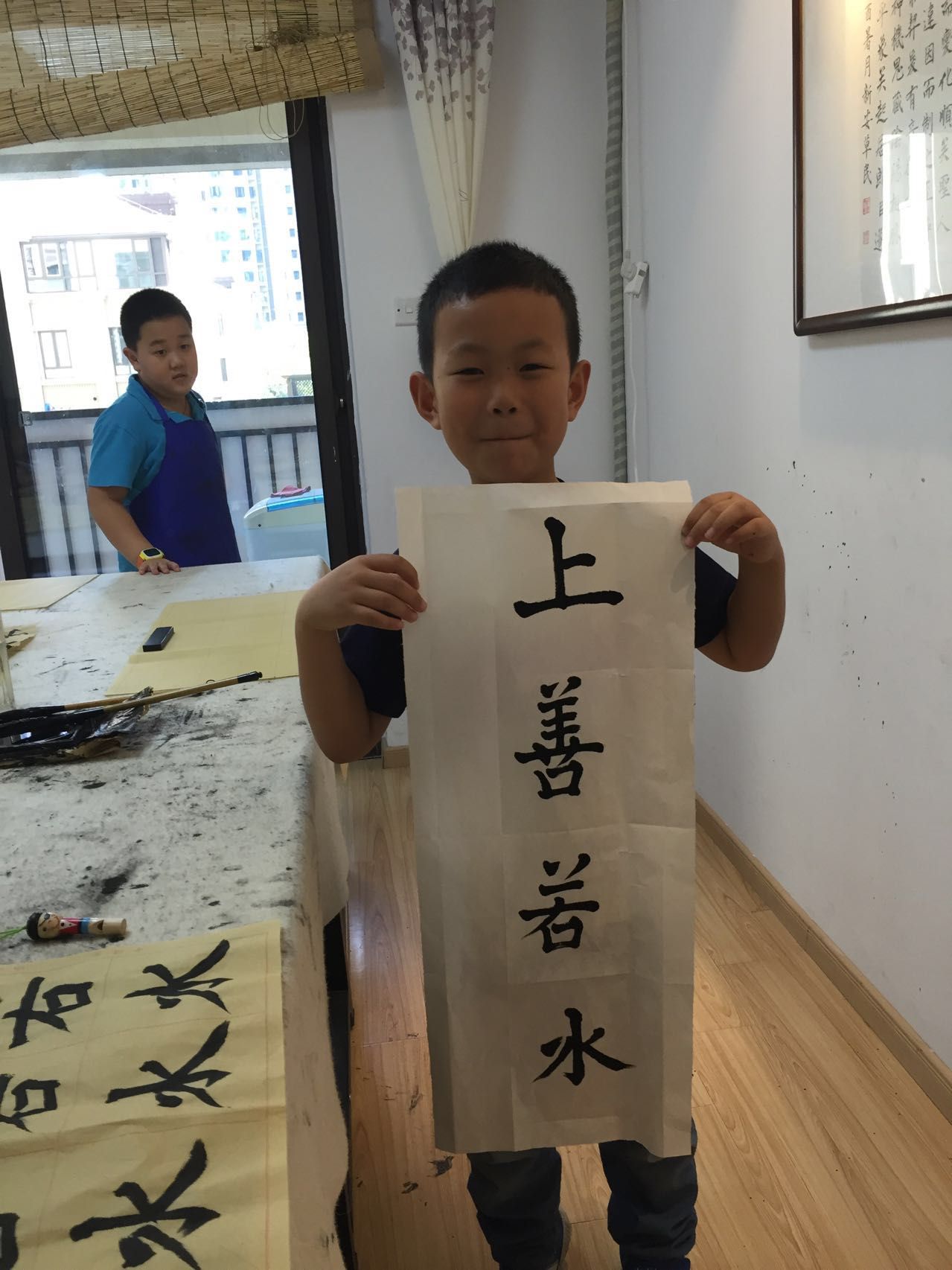 逍儿这个暑假开始学的书法,就在小区里面,图方便,自己就能去能回,不用接送了。