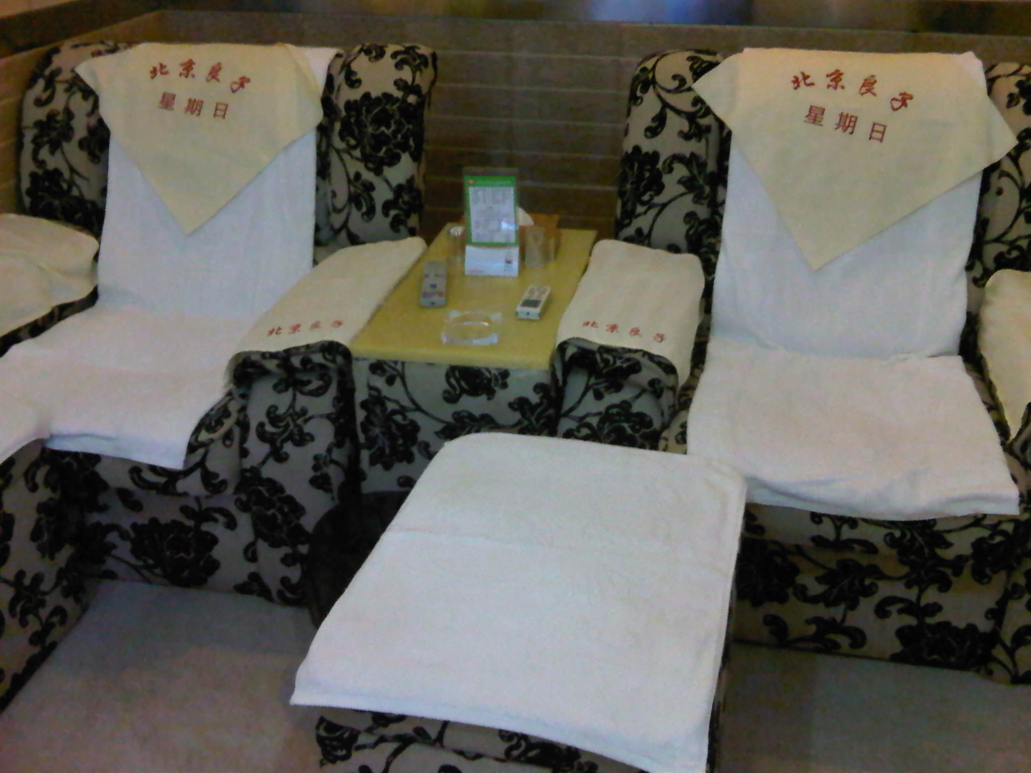 先说服务,没有完全按照这个团购套餐来,因为没有什么肾部保养,也没有打火机、擦鞋和代金券。团了好久也忘了什么项目了,在里面还让胖子上网看了一下,结果没给的服务,他也没说。喝了两杯菊花茶还花了二十块钱。