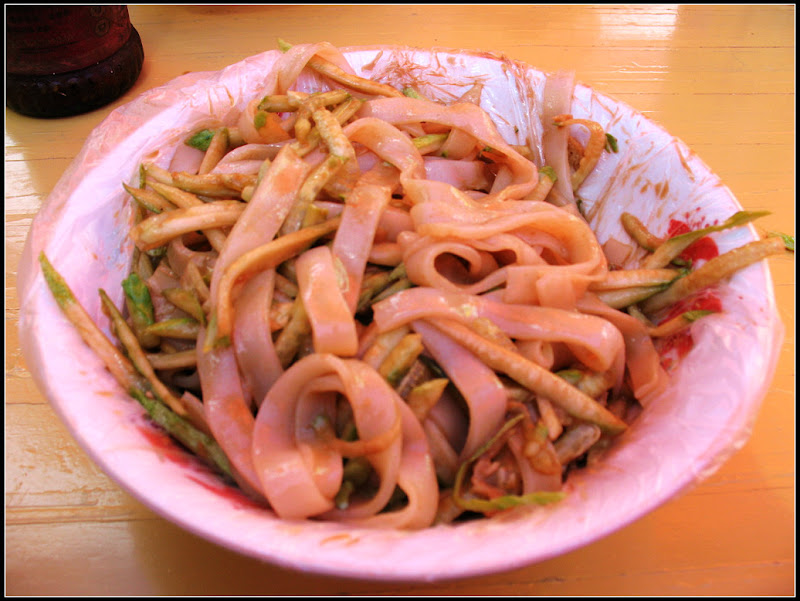 太阳真毒辣,天气真热,走得时候本来想着来的时候玩一趟,方便出行,所以穿了休闲装备,运动鞋,结果现在就是热的不行。到了学校菜市场,大嘴巴看到了吃的,立刻飞快马上买了一份焖子先吃上了,随后我们到小吃摊要了凉皮和酸辣粉。这里是上学时候几乎每天必来的地方,各种小吃丰富齐全,大嘴巴说她好想这里吃的,我说我几乎快忘了,没什么特别想吃的东西,因为鼻子的问题,不能吃辣,我就吃了半份凉皮,那半份被大嘴巴剥削了,她吃了一碗酸辣粉加半份凉皮,结账的时候六块钱,我说涨价了,大嘴巴说,老板你不要骗我们啊!o(∩_∩)o…,都七年了,物价怎么可能不涨呢,以前2块钱,一块五就搞定了。