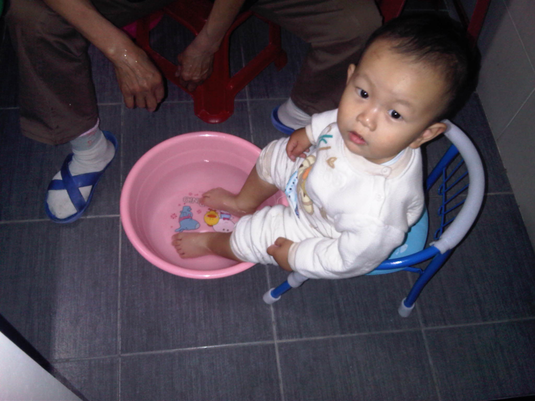 逍洗脚喽! 14条回复 逍不喜欢坐,于是给他买了个带响的小凳子,屁股一坐一起就吱吱叫的那种。不过,还是不会安静的坐下。 还好,小凳子有个用途,就是洗脚的时候,能安静的坐着,正合适。 看看,逍长大了吧!好看吗?