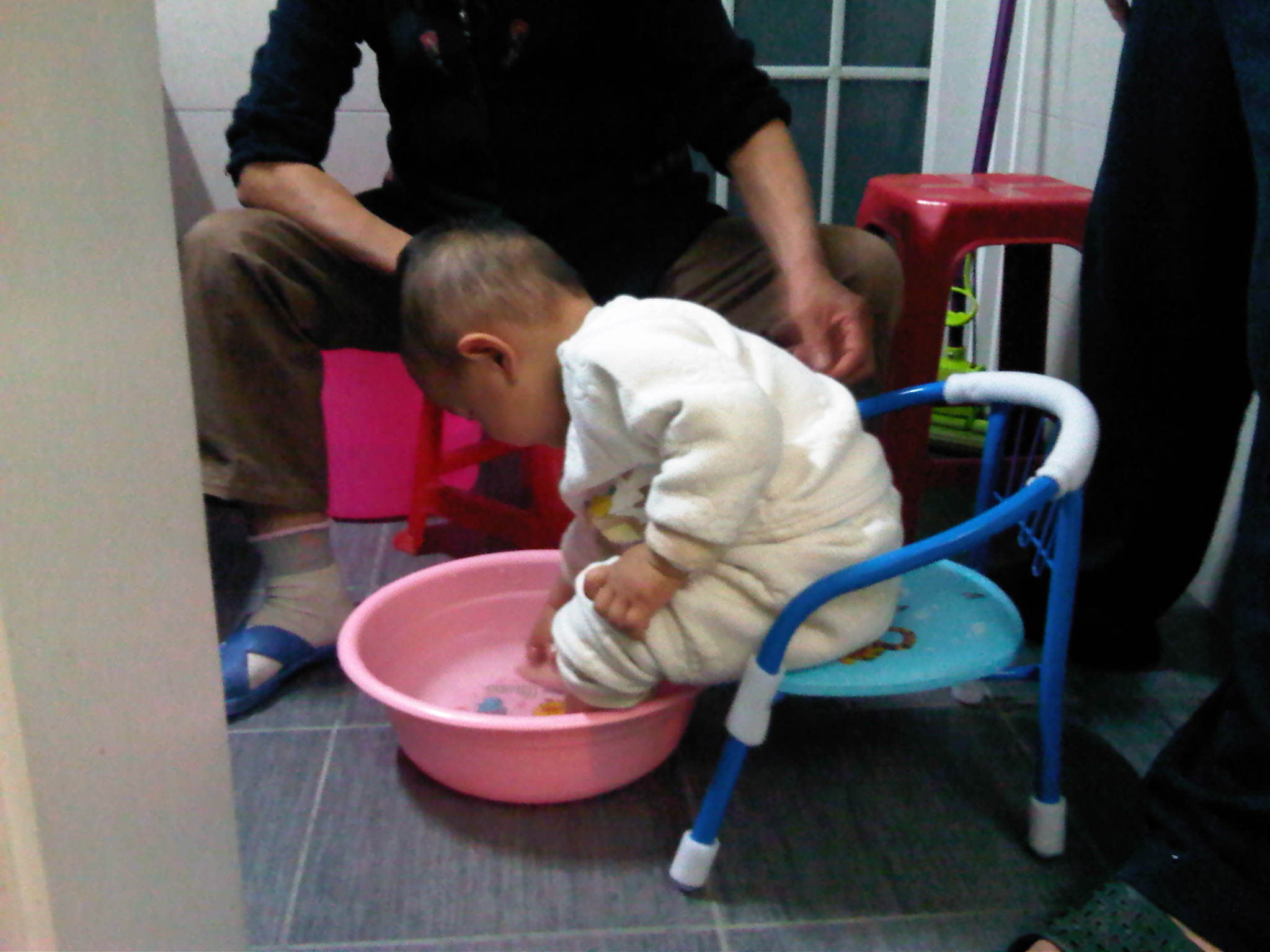 。。能自己洗脚了?