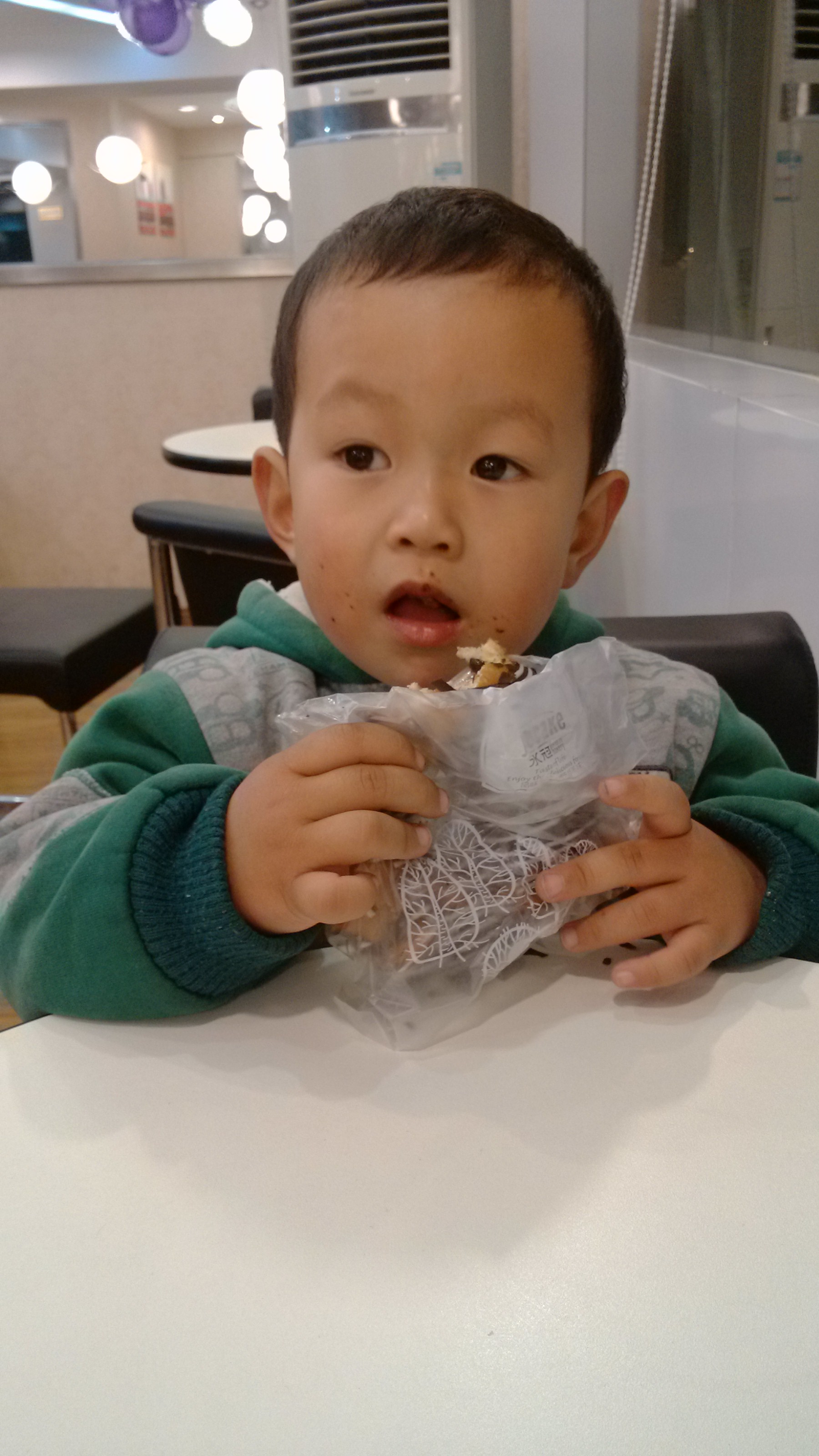 逍儿长大了,好久没晒逍的照片了,你们想他吗? 10条回复 家门口后面那些店都是干嘛的,逍儿现在都知道了,这不看见了华莱士就非要进去,坐在凳子上面就说我要吃烤鸡。有一天晚上路过 内衣店,还说,我要买衣服!自从看了速成鸡之后,再也不敢出去吃快餐店的鸡了。 非常喜欢吃面包,路过面包店拉着我进去,在门口自己拿托盘,然后就开始选面包,交完钱之后,自己就说上楼去吃。 看自己吃的多来劲! 好喜欢坐公交车,每次等公交车的表情都好专注! 好喜欢喝酸奶,天冷了都好久不让他喝了,上周去超市买了这个莫里斯安的,常温保存的酸奶。 最后晒一下妈妈和儿子的合影!